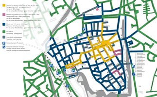 Zie hieronder het stratenplan van centrum Ieper die alle zones aangeeft.